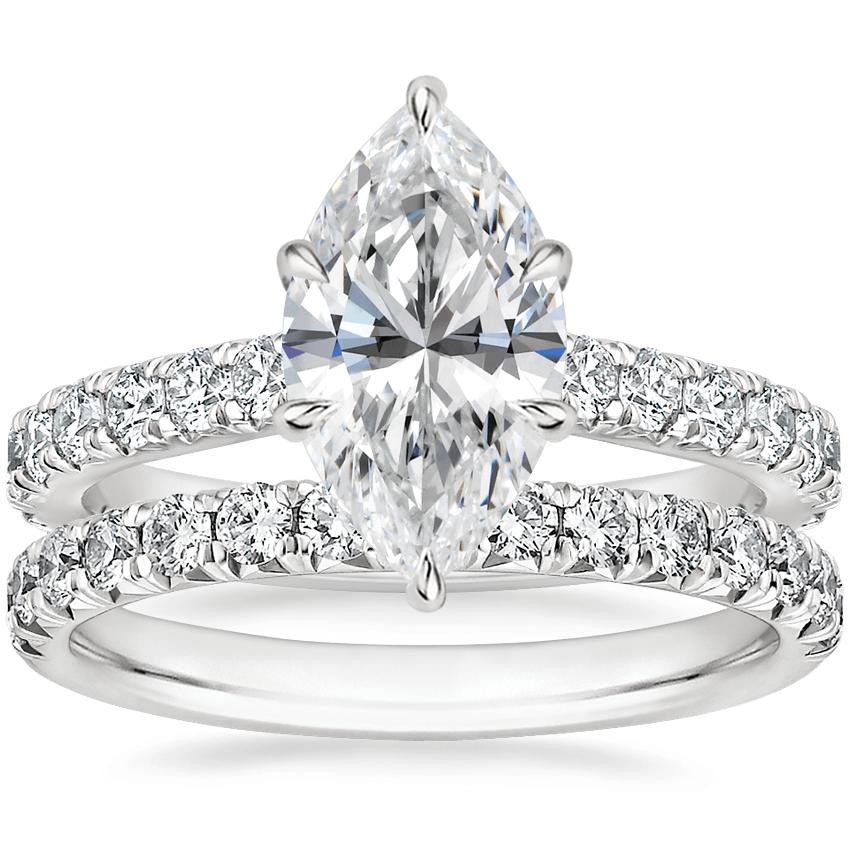 My fiancé proposed to me with this beautiful Duchess diamond engagement ring. I love the way it sparkles and catches the light! Nothing shines like a round solitaire diamond. Period. The 3/4 French pave diamond band is unique and maximizes the sparkles! This is a classic ring that demands to stand out. I originally thought I wanted to pair it with a matching diamond band. Instead, I paired it with a 3mm platinum band with miligrain design that allows the Duchess engagement ring to "pop". I absolutely love this ring and highly recommend this to the next couple.