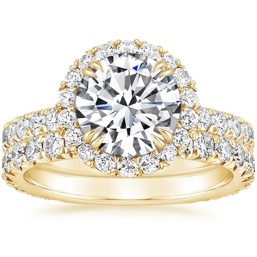 18K Yellow Gold Luxe Sienna Halo Diamond Bridal Set (1 3/8 ct. tw.) with 1.51 Carat Round Diamond