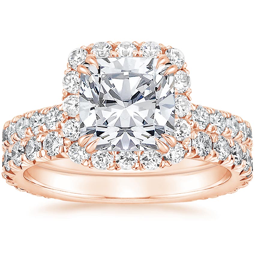 14K Rose Gold Luxe Sienna Halo Diamond Bridal Set (1 3/8 ct. tw.) with 1.0 Carat Cushion Diamond