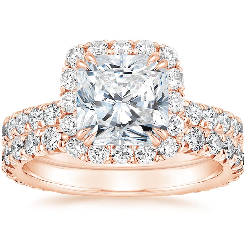 14K Rose Gold Luxe Sienna Halo Diamond Bridal Set (1 3/8 ct. tw.) with 2.51 Carat Radiant Diamond