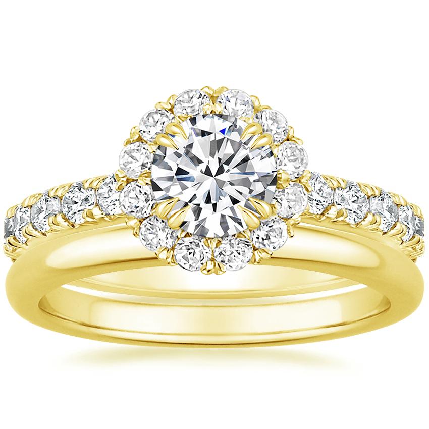 18K Yellow Gold Luxe Sienna Halo Diamond Ring (3/4 ct. tw.) with 2mm Comfort Fit Wedding Ring