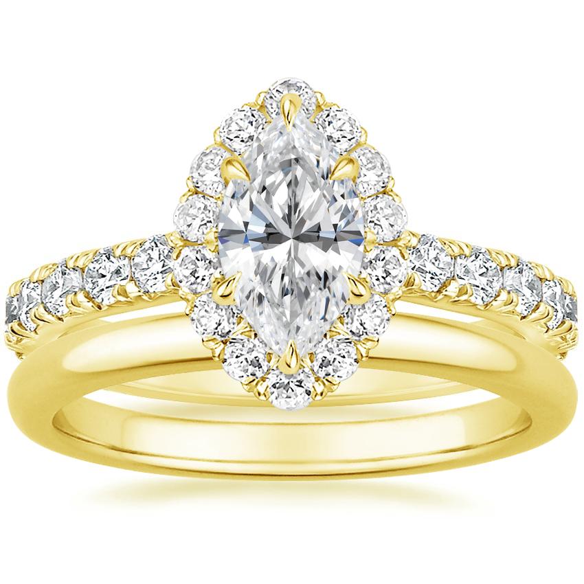 18K Yellow Gold Luxe Sienna Halo Diamond Ring (3/4 ct. tw.) with 2mm Comfort Fit Wedding Ring