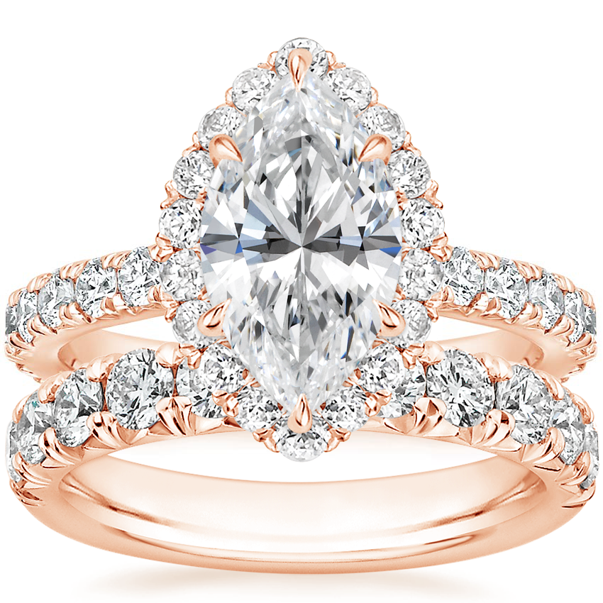 14K Rose Gold Luxe Sienna Halo Diamond Ring (3/4 ct. tw.) with Ellora Diamond Ring (7/8 ct. tw.)