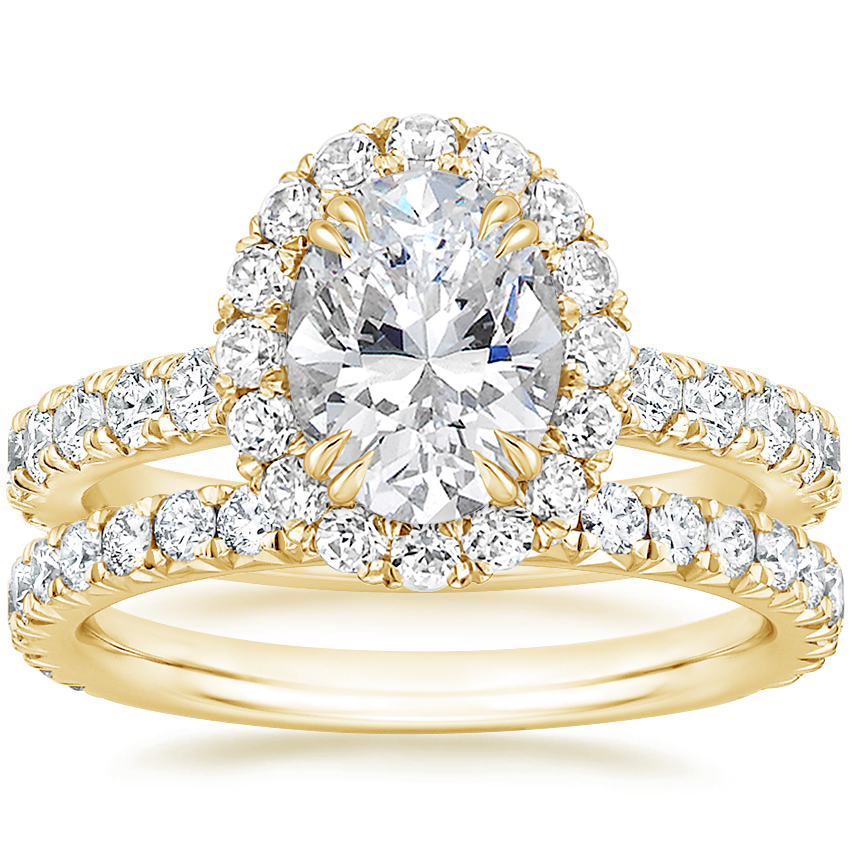 18K Yellow Gold Luxe Sienna Halo Diamond Ring (3/4 ct. tw.) with Luxe Amelie Diamond Ring (1/2 ct. tw.)