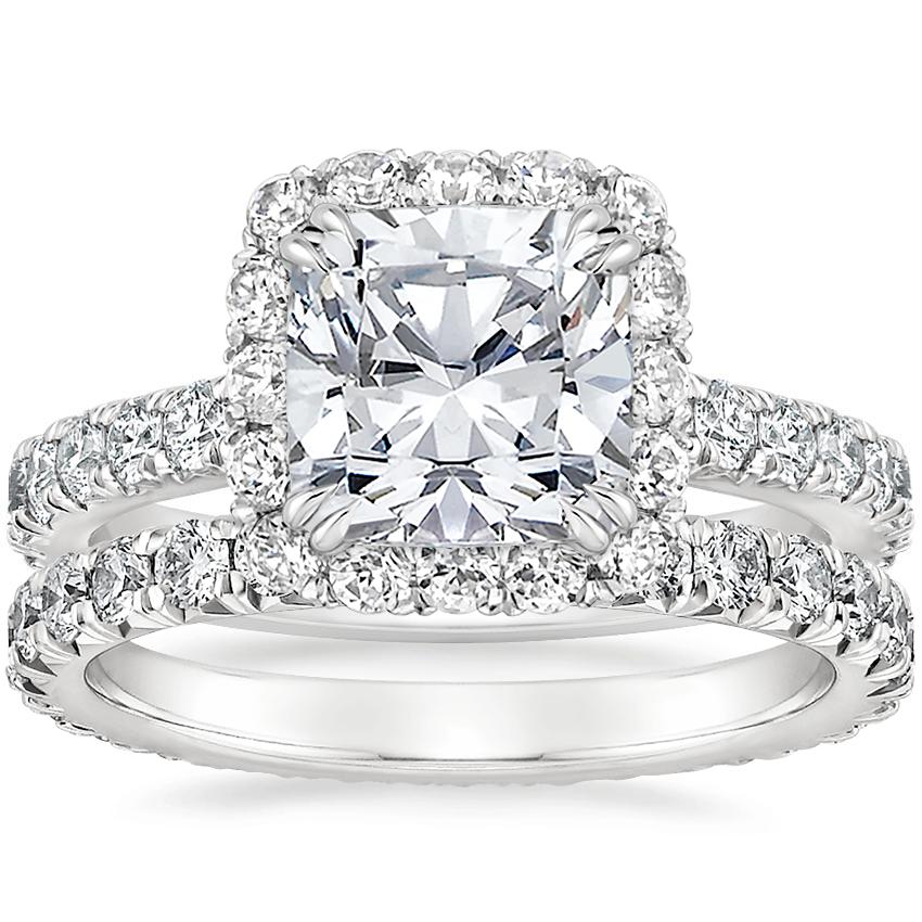 18K White Gold Luxe Sienna Halo Lab Diamond Ring (3/4 ct. tw.) with Sienna Eternity Diamond Ring (7/8 ct. tw.) with 1.69 Carat Cushion Lab Grown Diamond