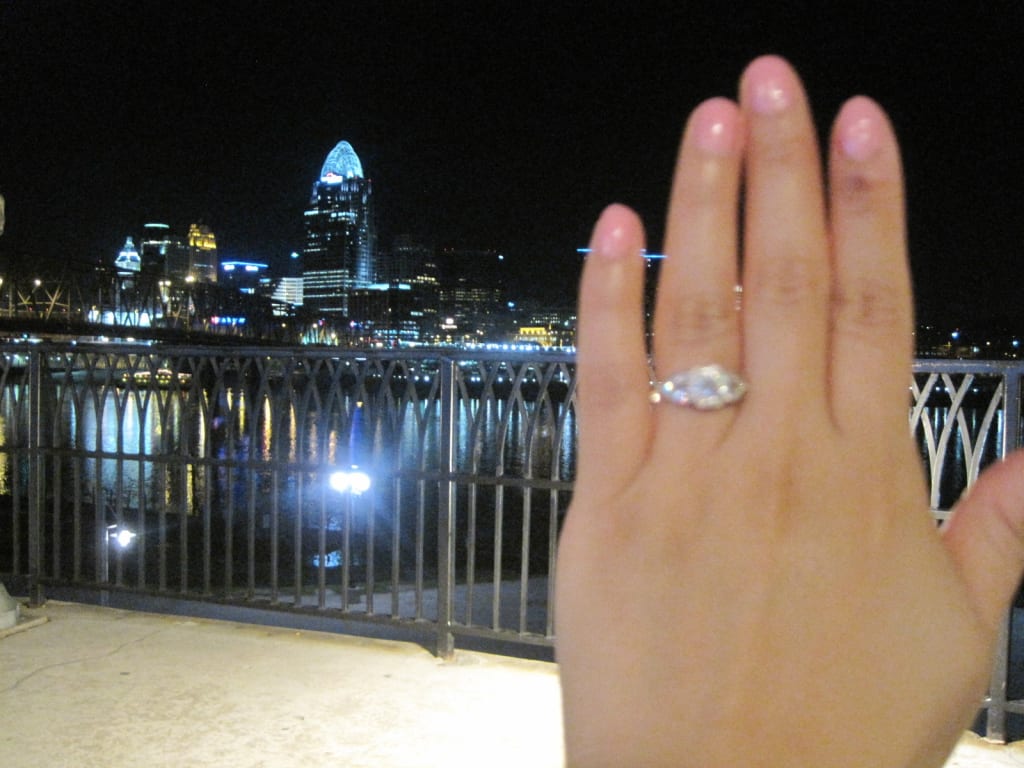 A unique and very sparkly engagement ring. People notice it! ...Read More