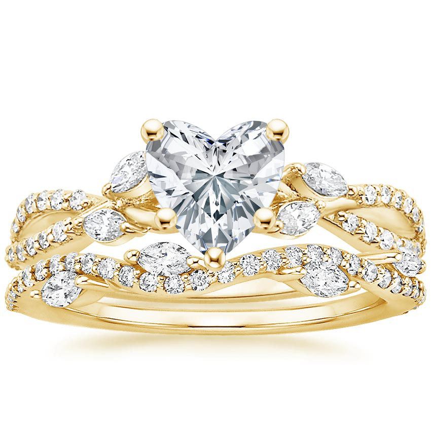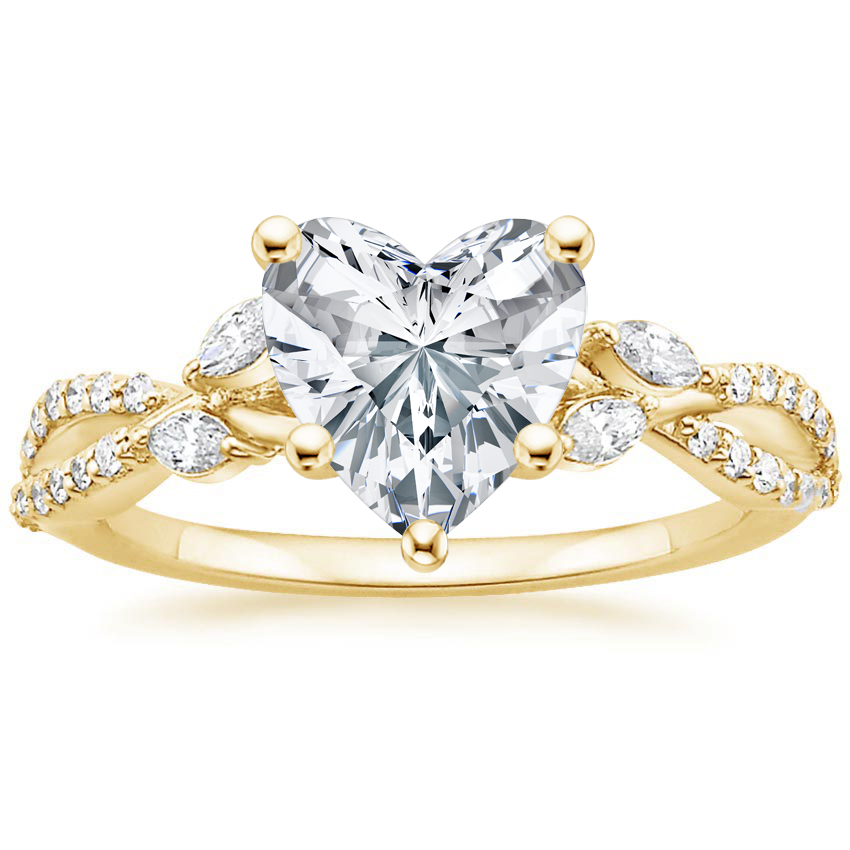 18K Yellow Gold Luxe Willow Diamond Ring (1/4 ct. tw.) with Luxe Winding Willow Diamond Ring (1/4 ct. tw.) with 1.51 Carat Heart Diamond