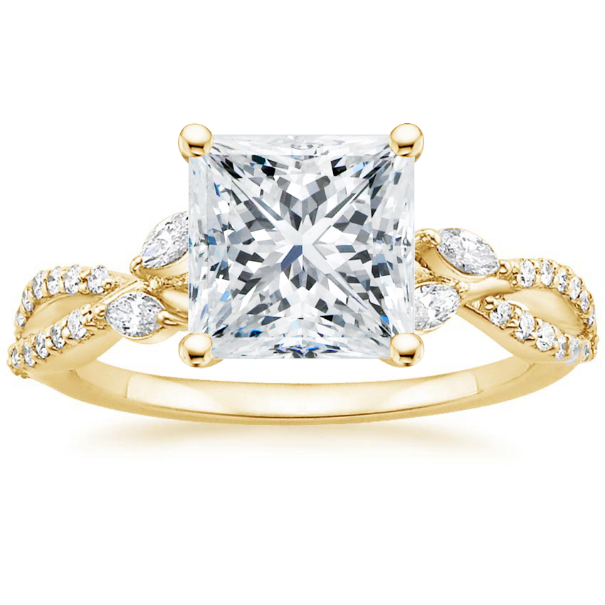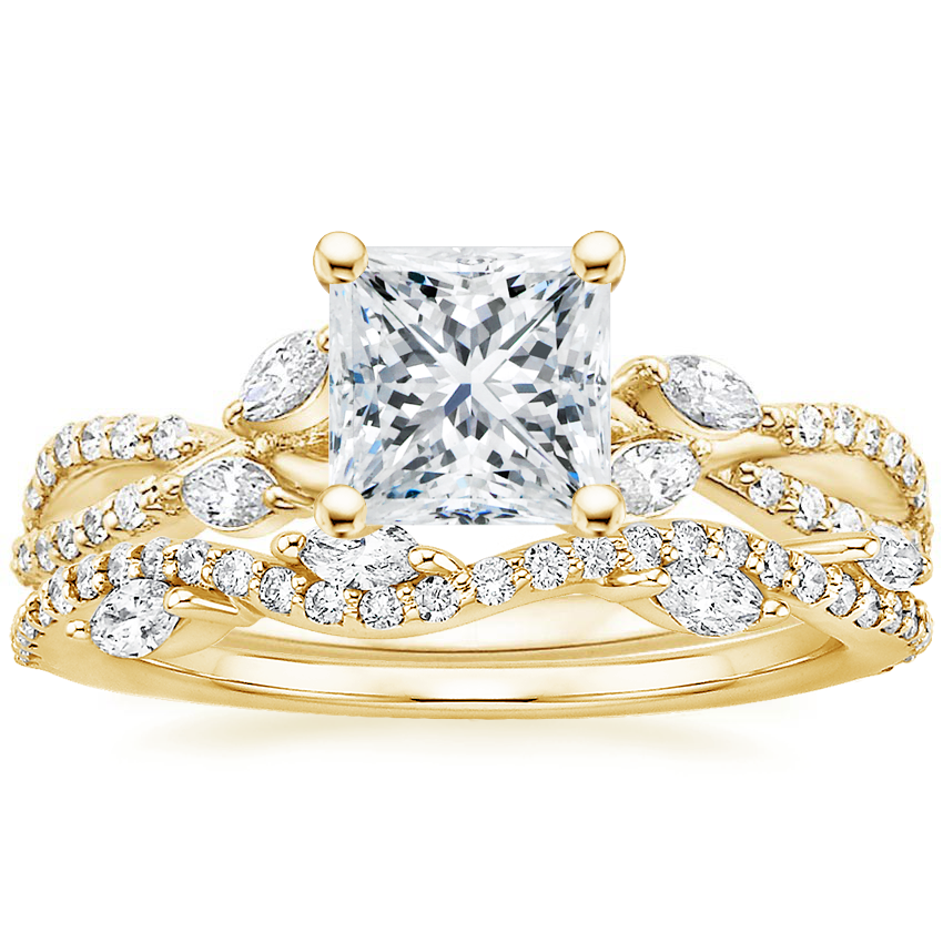 18K Yellow Gold Luxe Willow Diamond Ring (1/4 ct. tw.) with Luxe Winding Willow Diamond Ring (1/4 ct. tw.) with 1.0 Carat Princess Diamond