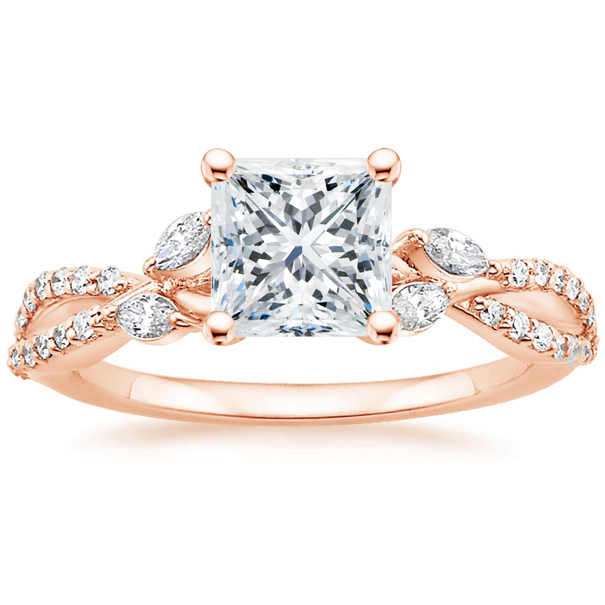 14K Rose Gold Luxe Willow Diamond Ring (1/4 ct. tw.) with Luxe Winding Willow Diamond Ring (1/4 ct. tw.) with 0.51 Carat Princess Diamond