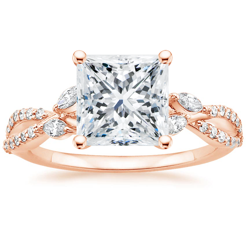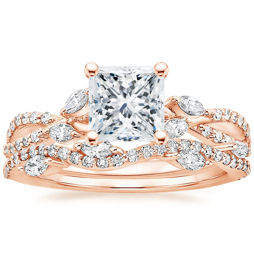 14K Rose Gold Luxe Willow Diamond Ring (1/4 ct. tw.) with Luxe Winding Willow Diamond Ring (1/4 ct. tw.) with 1.0 Carat Princess Diamond