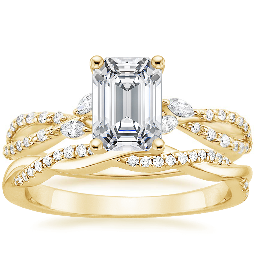 18K Yellow Gold Luxe Willow Diamond Ring (1/4 ct. tw.) with Petite Twisted Vine Diamond Ring (1/8 ct. tw.)