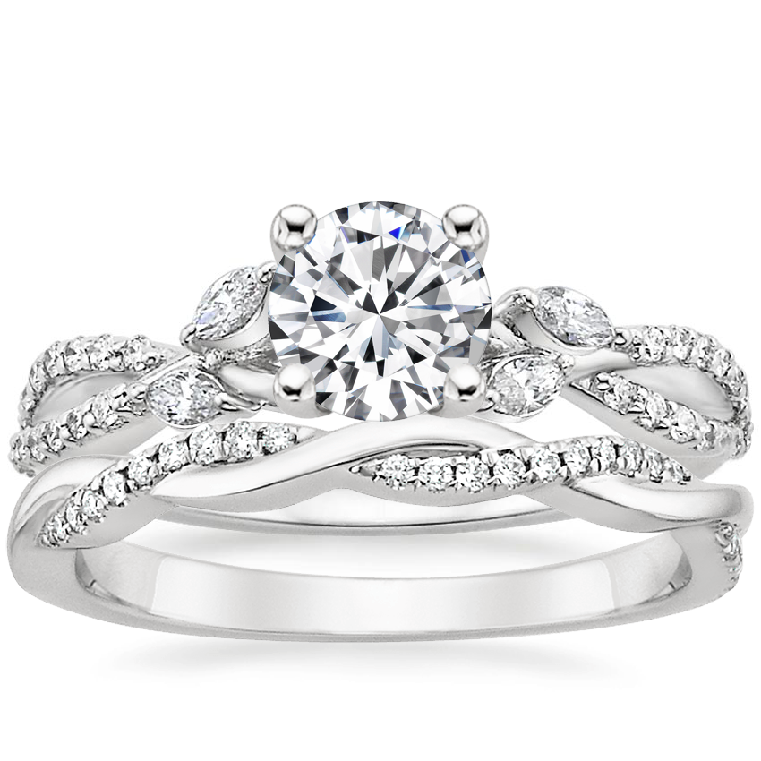 Platinum Luxe Willow Diamond Ring (1/4 ct. tw.) with Petite Twisted Vine Diamond Ring (1/8 ct. tw.)
