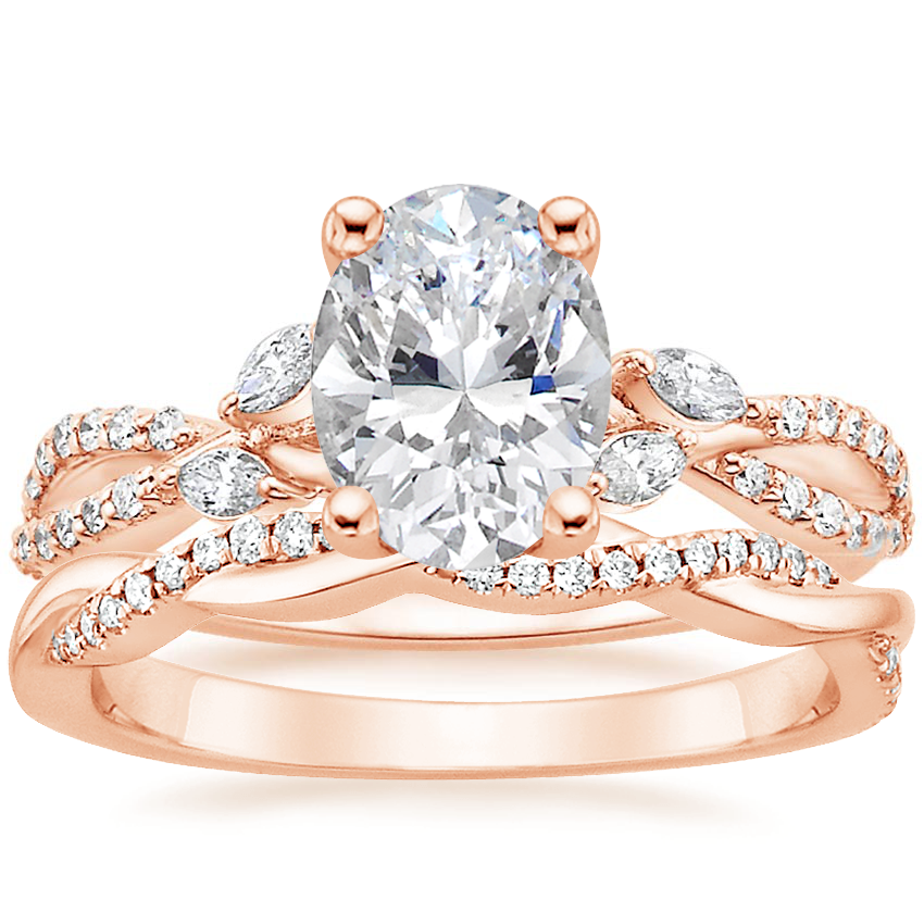 14K Rose Gold Luxe Willow Diamond Ring (1/4 ct. tw.) with Petite Twisted Vine Diamond Ring (1/8 ct. tw.)