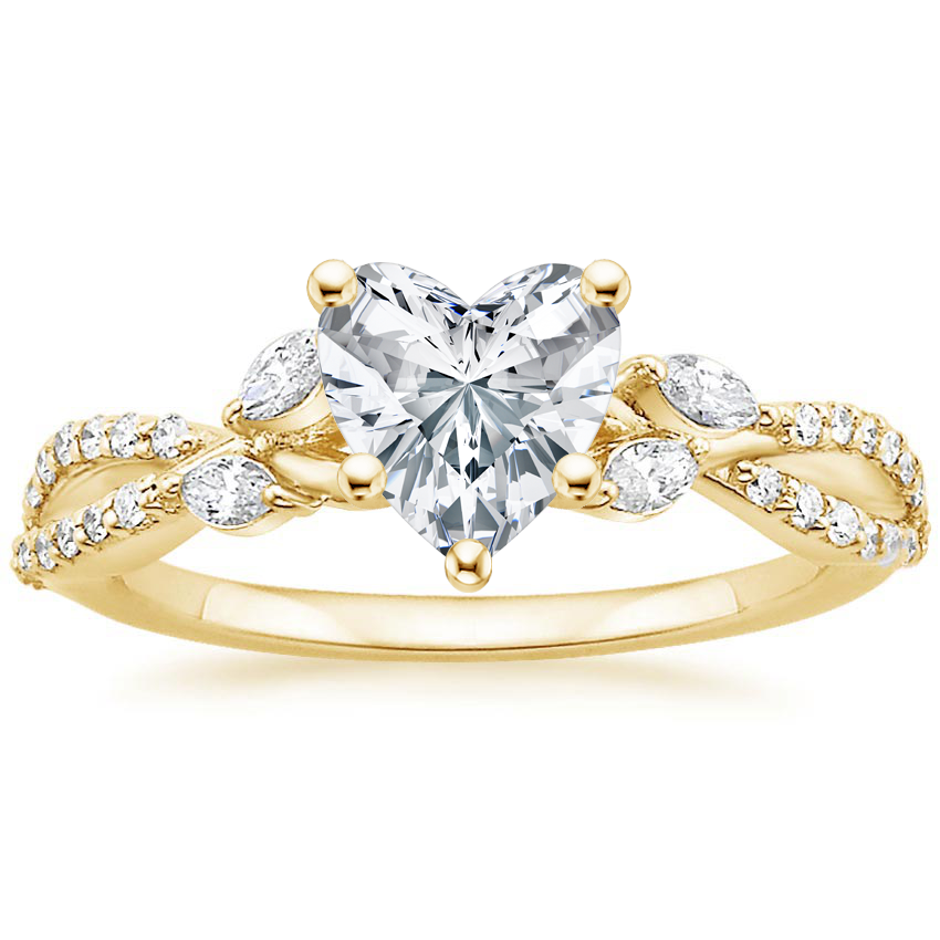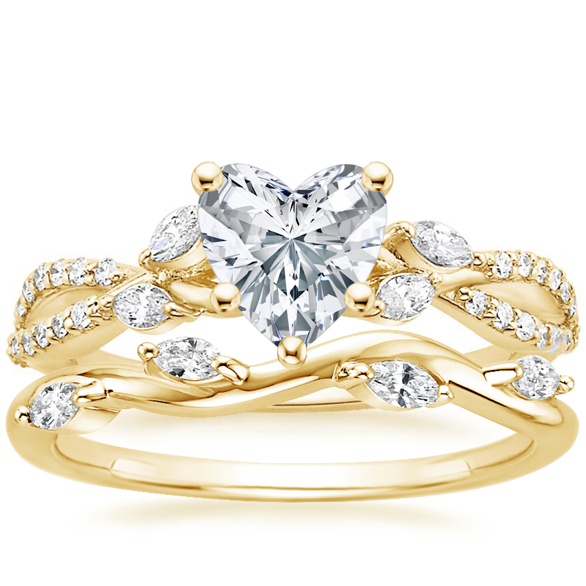 18K Yellow Gold Luxe Willow Lab Diamond Ring (1/4 ct. tw.) with Winding Willow Diamond Ring (1/8 ct. tw.) with 0.75 Carat Heart Lab Grown Diamond