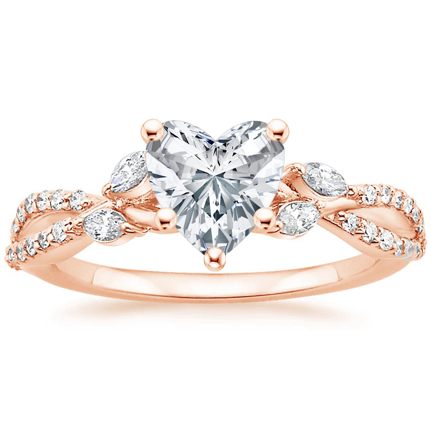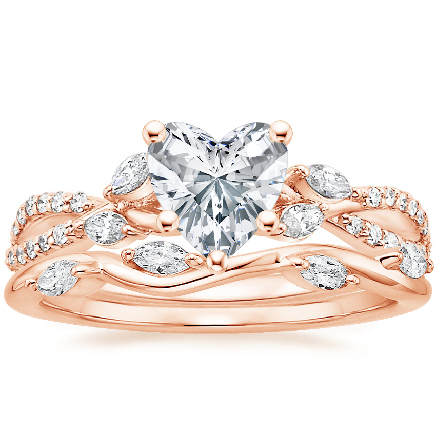 14K Rose Gold Luxe Willow Lab Diamond Ring (1/4 ct. tw.) with Winding Willow Diamond Ring (1/8 ct. tw.) with 0.75 Carat Heart Lab Grown Diamond