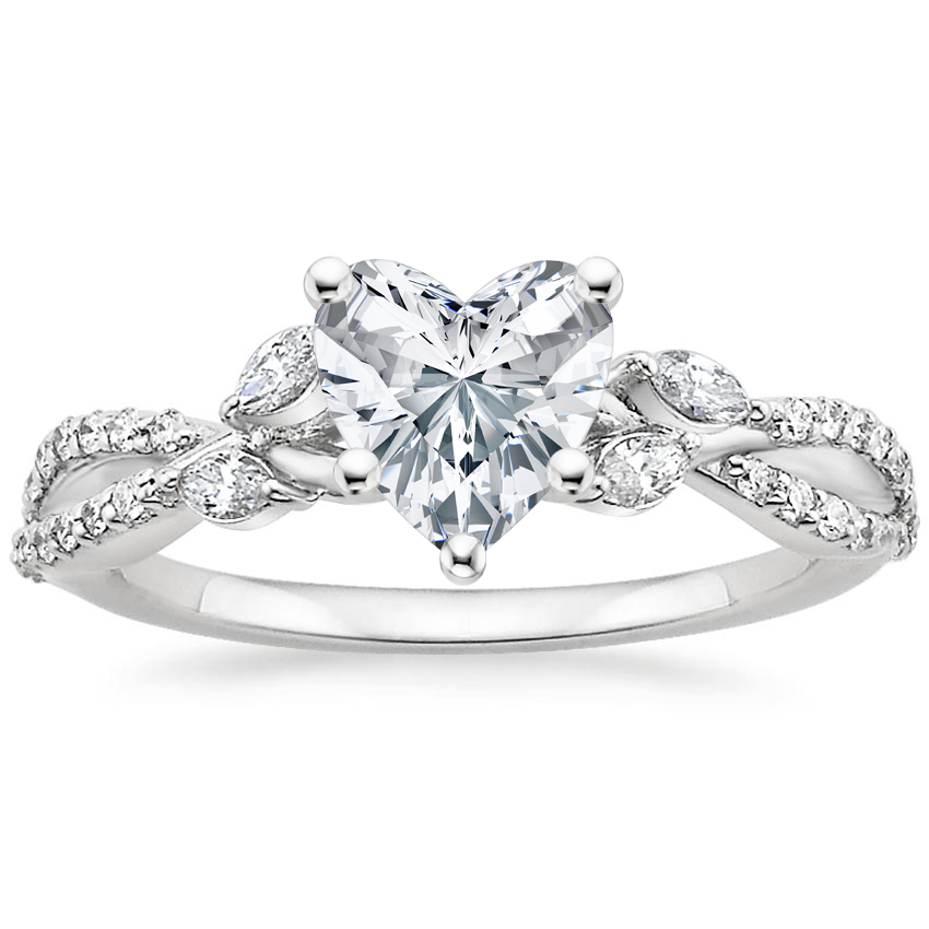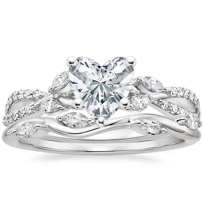 18K White Gold Luxe Willow Lab Diamond Ring (1/4 ct. tw.) with Winding Willow Diamond Ring (1/8 ct. tw.) with 0.75 Carat Heart Lab Grown Diamond