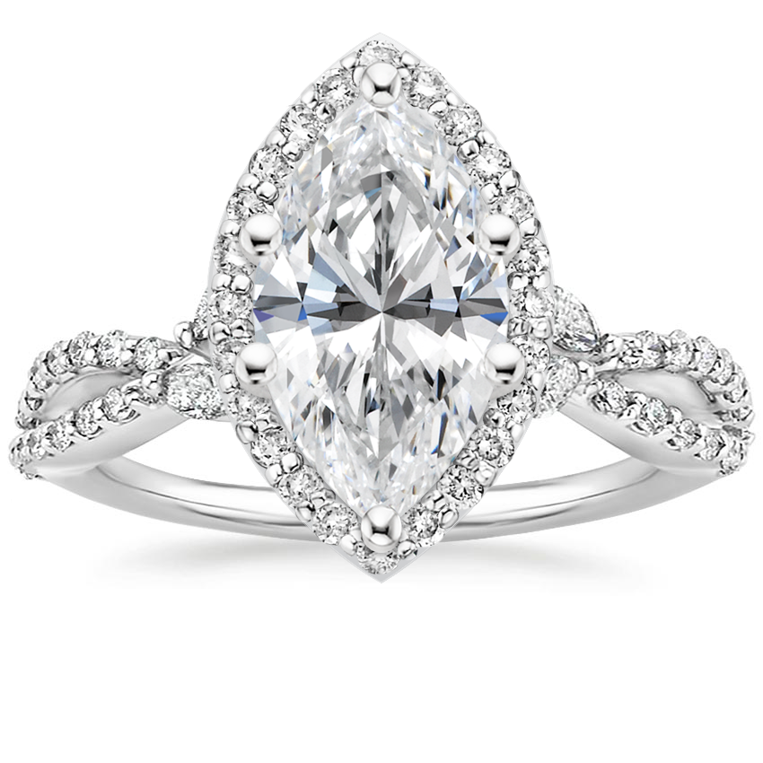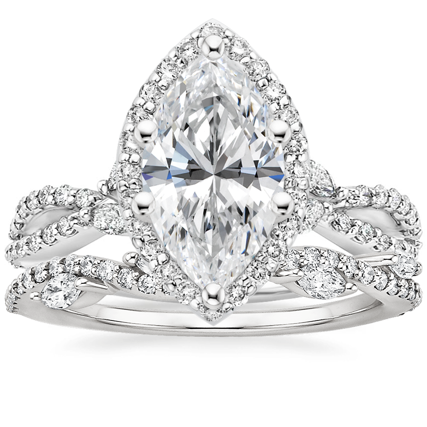 18K White Gold Luxe Willow Halo Diamond Ring (1/2 ct. tw.) with Luxe Winding Willow Diamond Ring (1/4 ct. tw.)
