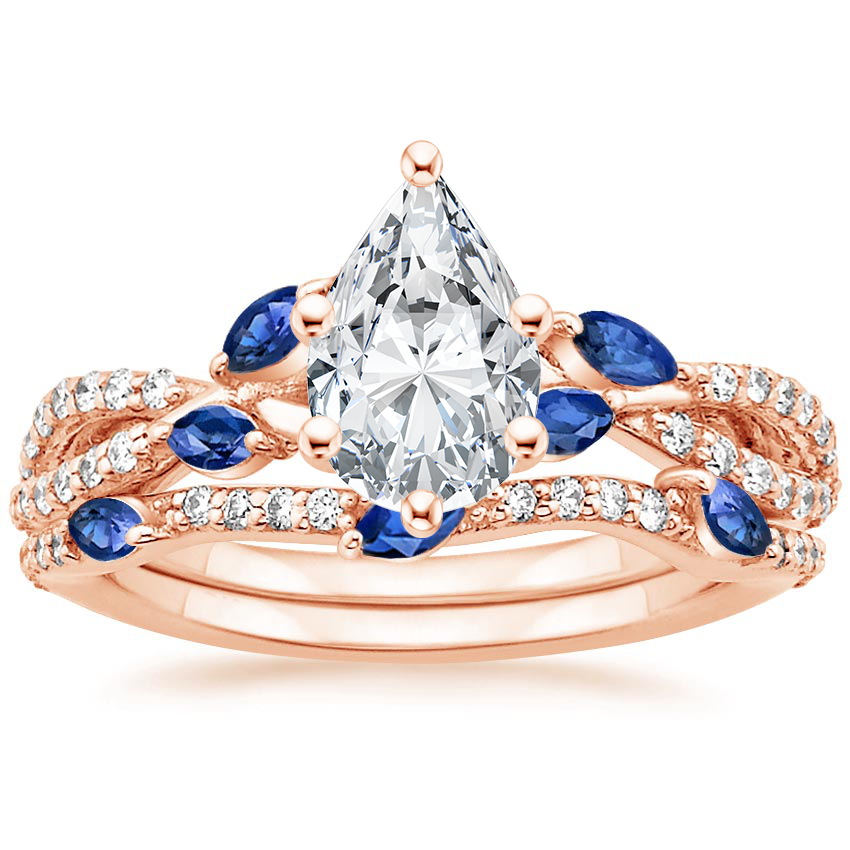 14K Rose Gold Luxe Willow Sapphire and Diamond Bridal Set (1/4 ct. tw.)