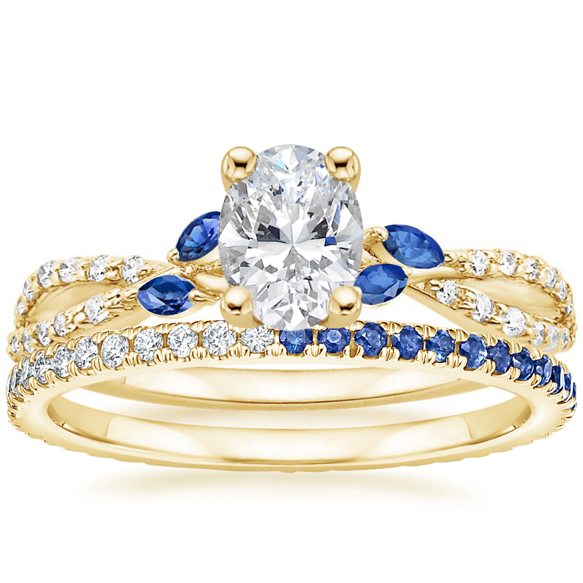 18K Yellow Gold Luxe Willow Sapphire and Diamond Ring (1/8 ct. tw.) with Ballad Sapphire and Diamond Eternity Ring