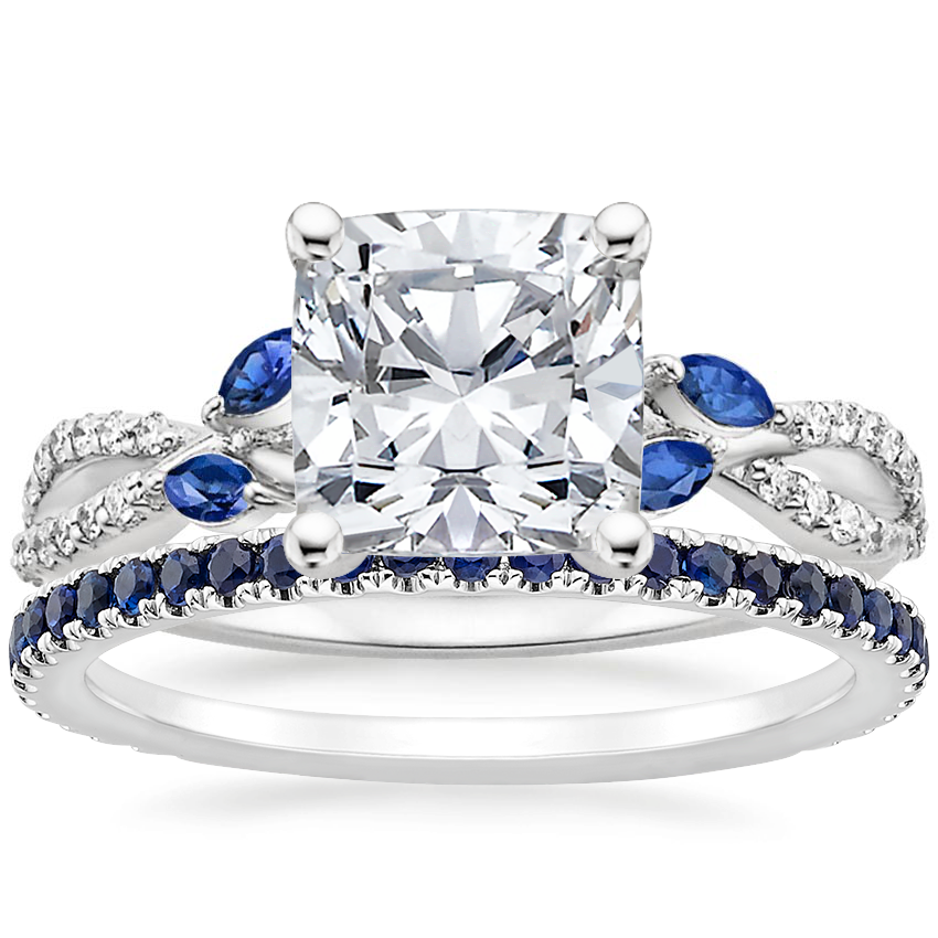 Platinum Luxe Willow Sapphire and Diamond Ring (1/8 ct. tw.) with Luxe Ballad Sapphire Ring with 3.06 Carat Cushion Lab Grown Diamond