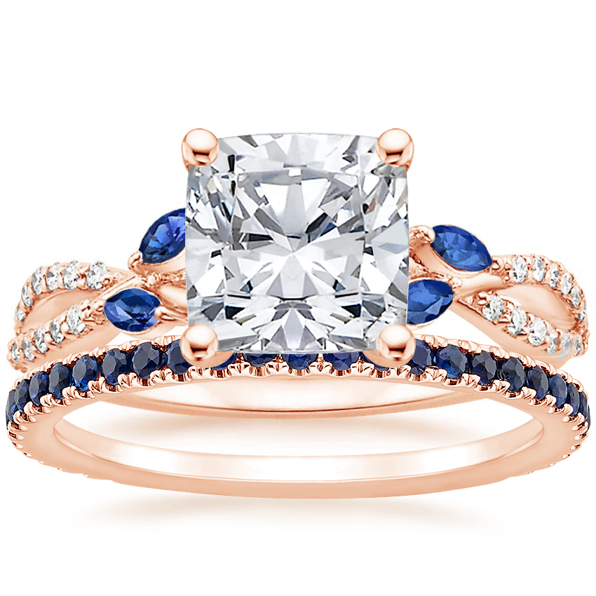 14K Rose Gold Luxe Willow Sapphire and Diamond Ring (1/8 ct. tw.) with Luxe Ballad Sapphire Ring with 3.06 Carat Cushion Lab Grown Diamond