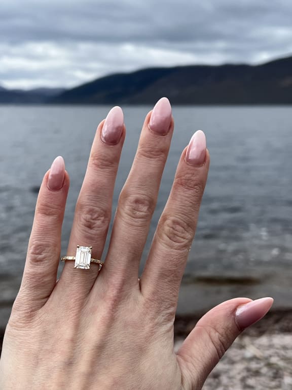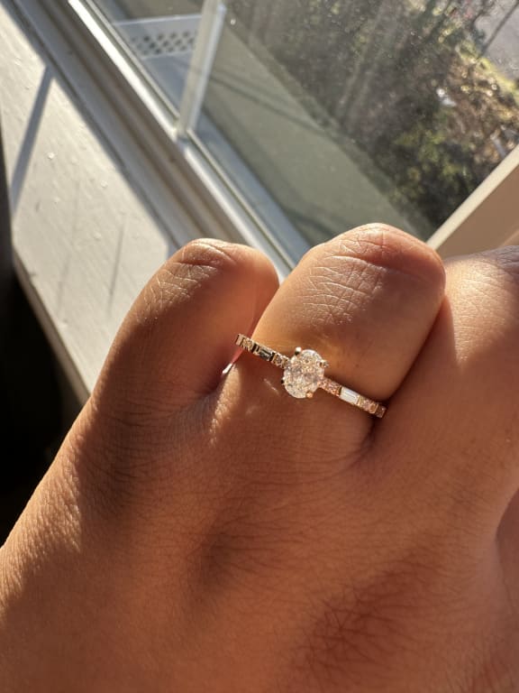 Absolutely stunning!! Can't believe how beautiful the ring is in person. So so happy with this design!! 1.67 carat 8.5 ring size