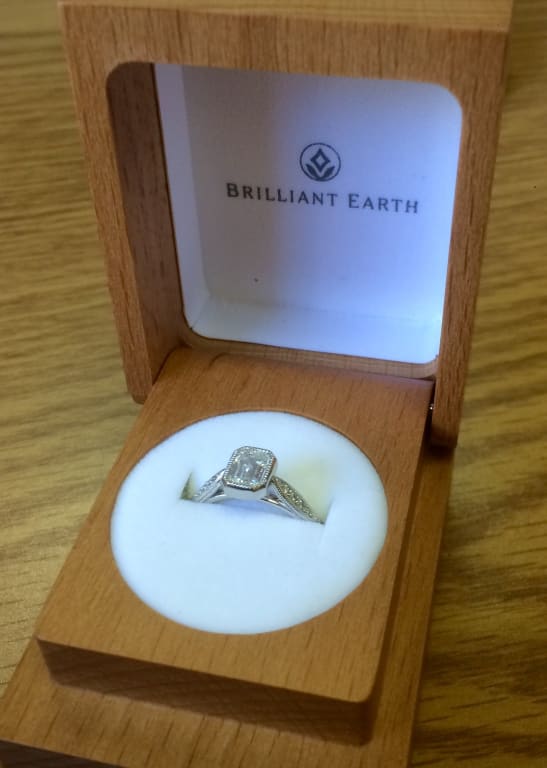 I absolutely love my engagement ring . We were having trouble finding a true vintage ring that we both loved . This ring has the vintage bezel milgrain detail that I absolutely love and I could not be any happier . Thank you Brilliant Earth !