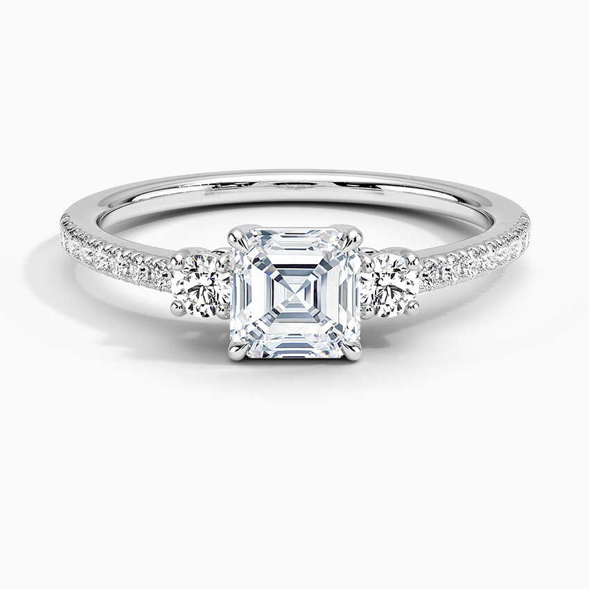 Platinum Lyra Three Stone Diamond Ring (1/4 ct. tw.) with 0.82 Carat Asscher Diamond