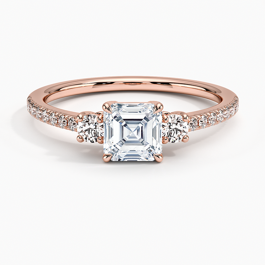 14K Rose Gold Lyra Three Stone Diamond Ring (1/4 ct. tw.) with 0.82 Carat Asscher Diamond