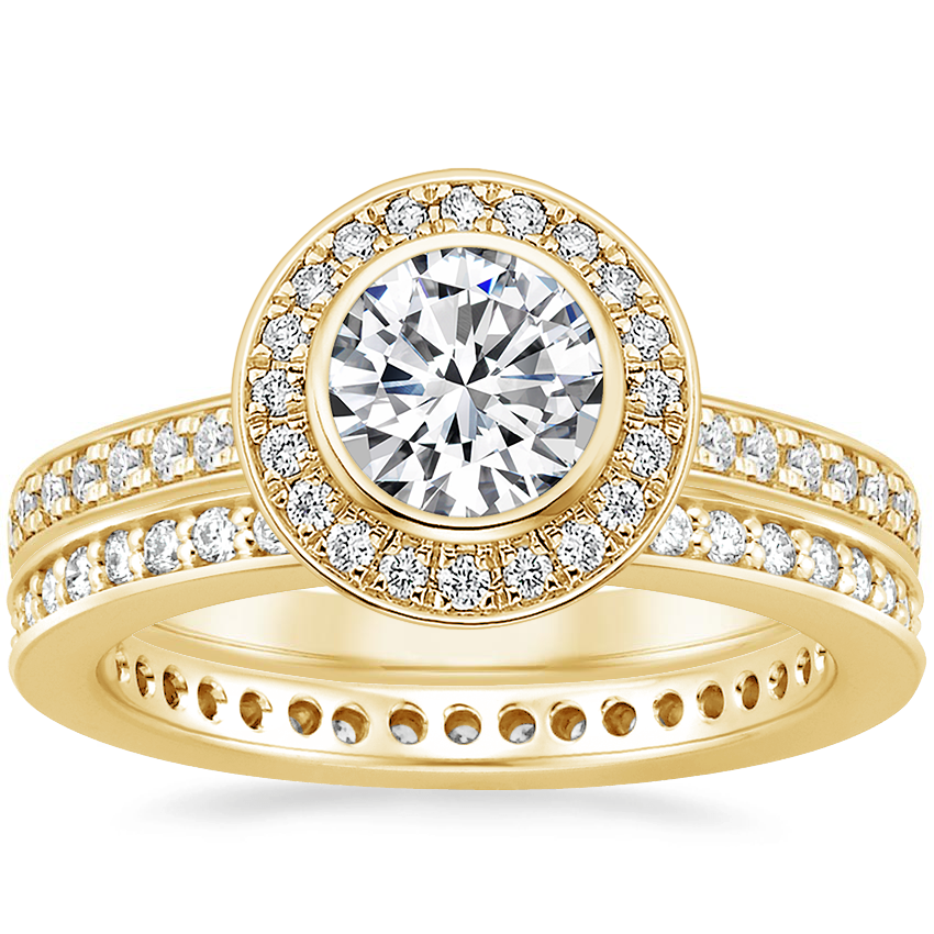 18K Yellow Gold Malia Diamond Ring (1/4 ct. tw.) with Starlight Eternity Diamond Ring (1/3 ct. tw.)