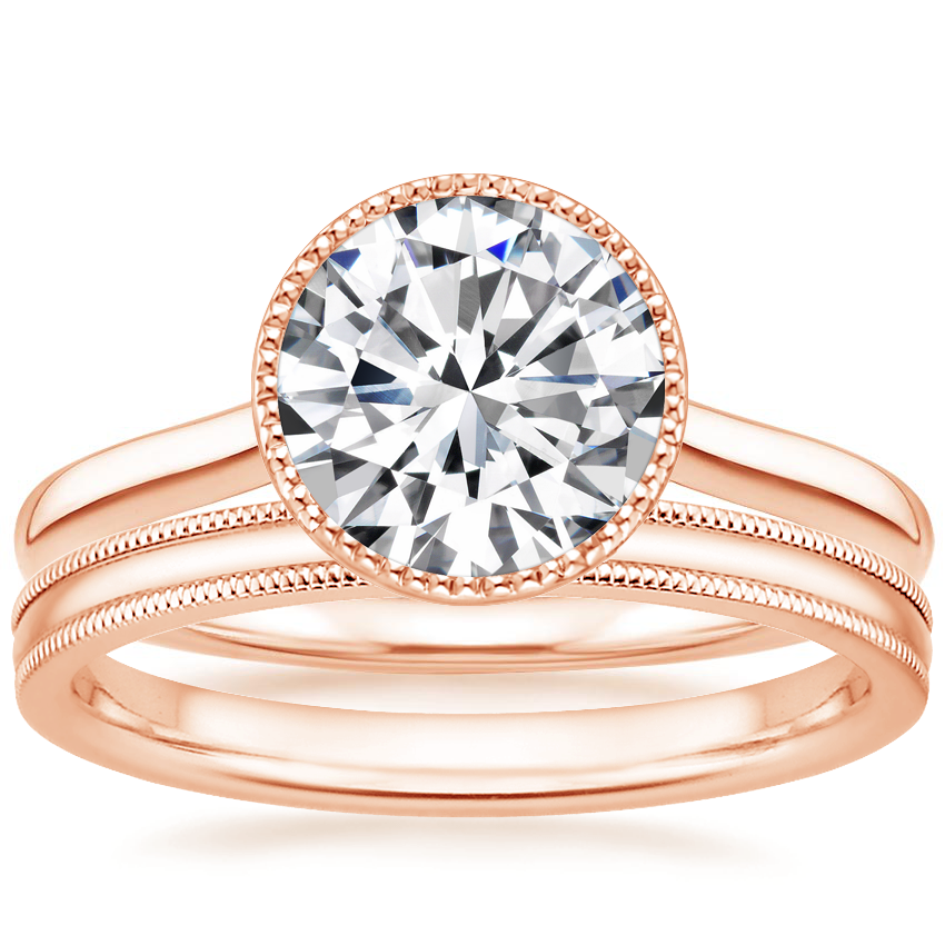 14K Rose Gold Margot Ring with 2mm Milgrain Wedding Ring