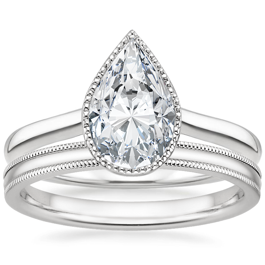 18K White Gold Margot Ring with 2mm Milgrain Wedding Ring