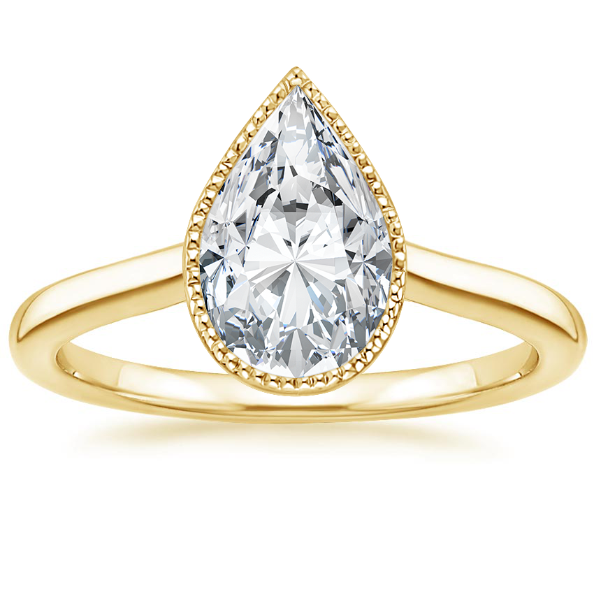 I chose this ring as my engagement ring because it's so special! The milgrain gives the ring such a vintage look. I love the clean look of the band. I had it customized to 14k yellow gold because I prefer the color a bit more. My ring is set with an 8mm round moissanite.