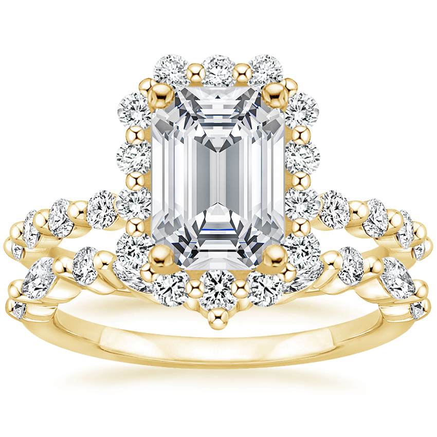18K Yellow Gold Marseille Halo Diamond Ring (1/2 ct. tw.) with Curved Versailles Diamond Ring