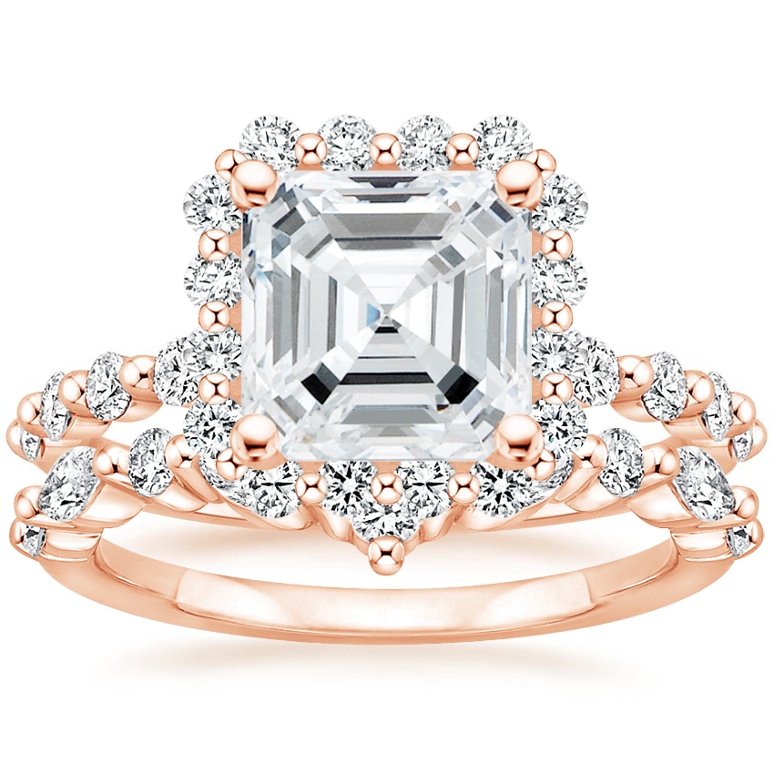 14K Rose Gold Marseille Halo Diamond Ring (1/2 ct. tw.) with Curved Versailles Diamond Ring