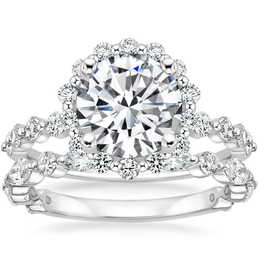 Platinum Marseille Halo Diamond Ring (1/2 ct. tw.) with Luxe Versailles Diamond Ring (5/8 ct. tw.)