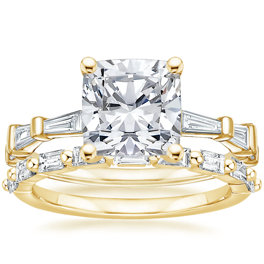 18K Yellow Gold Memoir Baguette Diamond Ring (1/2 ct. tw.) with Dominique Diamond Ring (1/3 ct. tw.)
