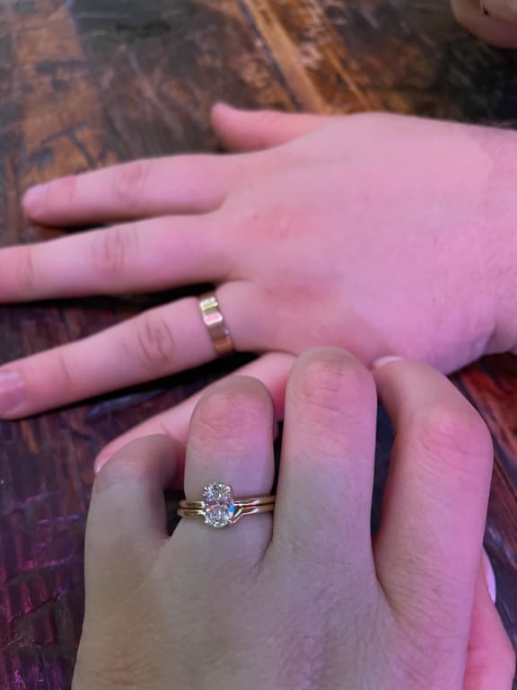 My fiancé surprised me with a Brilliant Earth engagement ring last year (I've been wanting one forever). So when it came time to find a wedding band, I wanted to get mine from Brilliant Earth as well! However, I wanted a simple band to sit flush with my engagement ring but because my diamond isn't raised, I was having trouble finding a simple band. I purchased the half moon nesting ring after a few discussions with the online chat portal (thanks Ashley) and took a chance and have no regrets, it fits perfectly! For reference, my engagement ring is a 2.15ct Elodie in 18k yellow gold. ...Read More