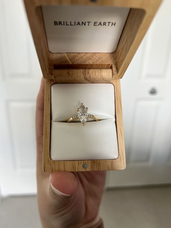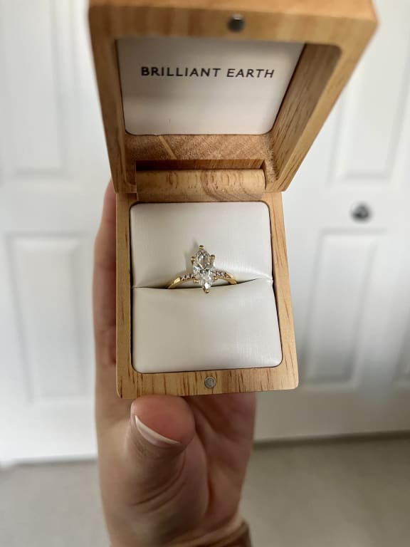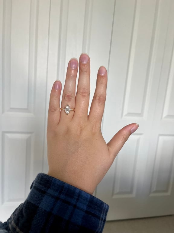 My fiancé proposed with this ring and I couldn't be happier! I didn't want a thick band or a lot of accents. This ring was the perfect option. With some accents and a perfectly sized band it fits like a gem. The marquise diamond looks so good and i'm constantly getting compliments! ...Read More