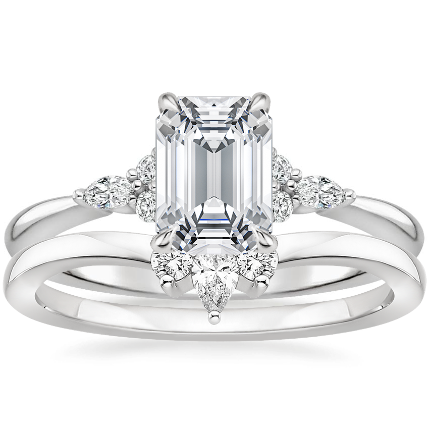 I absolutely love my rings! My husband and I went in to look around and I had already found the Nadia online and fell in love when I saw it in person. I didn't have anything in mind for the wedding band, I just wanted it to compliment the engagement ring and fit without a gap between the bands. Our consultant and the store manager, Morgan, recommended the Lunette. I loved the pairing. After the rings came in and my husband went to pick them up, the wedding band did not fit at all and there was about 1/8 inch space between them, which is the only thing I specifically wanted to avoid. It was honestly ugly. Morgan was busy with an appointment and was not available to talk to him, so he talked to a different consultant and they basically said there was nothing that could be done about it. Unhappy with that answer, we made an appointment to come back a different day and speak with Morgan. She was just as frustrated as we were and suggested we get the elongated version instead to fit around the shape of the main stone and extra prong - she thought that was the issue. It fit the display engagement ring, which was a smaller, oval stone with four prongs instead of six. The new wedding band came in and it was PERFECT! If it wasn't for Morgan, we would have returned them and gone somewhere else, which would have been really disappointing considering I loved the engagement ring so much. Customer service really saves the day! Thank you Morgan!