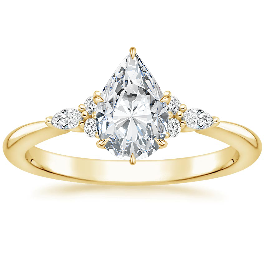 18K Yellow Gold Nadia Lab Diamond Ring with Aria Contoured Diamond Ring with 0.75 Carat Pear Lab Grown Diamond