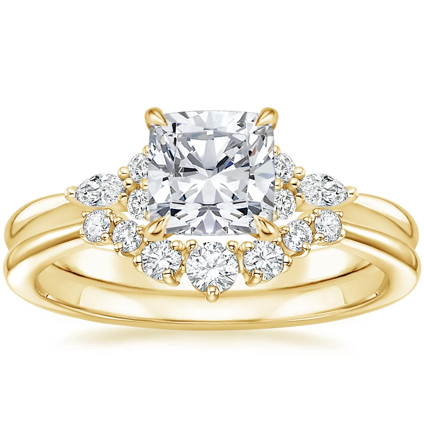 18K Yellow Gold Nadia Diamond Ring with Aria Contoured Diamond Ring