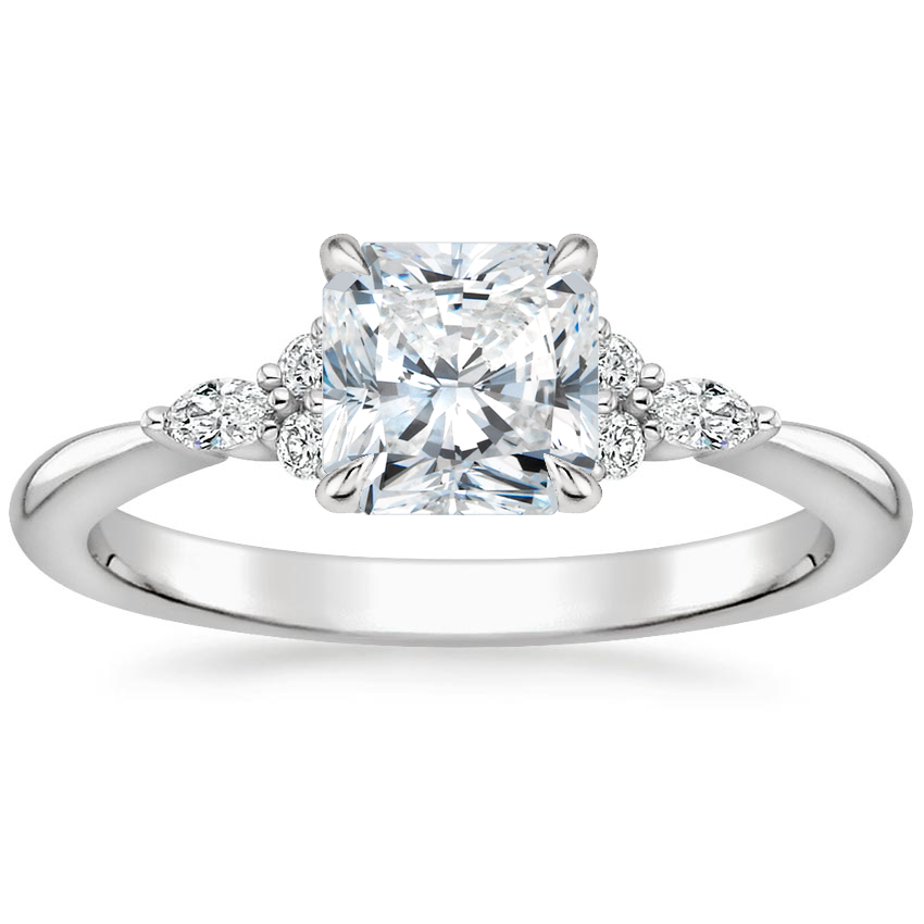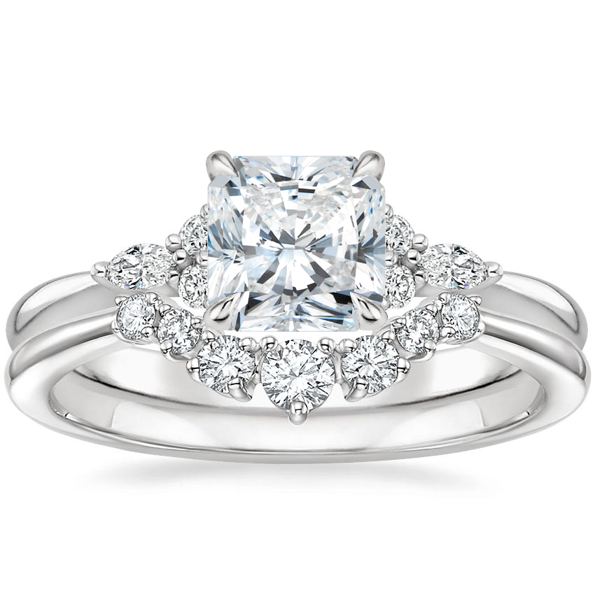 Platinum Nadia Lab Diamond Ring with Aria Contoured Diamond Ring with 0.75 Carat Radiant Lab Grown Diamond