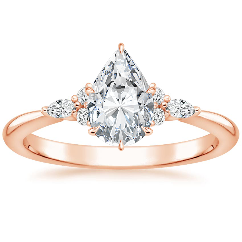 14K Rose Gold Nadia Lab Diamond Ring with Aria Contoured Diamond Ring with 0.75 Carat Pear Lab Grown Diamond