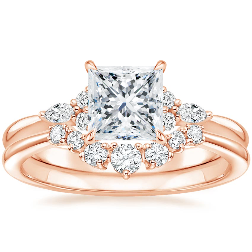 14K Rose Gold Nadia Diamond Ring with Aria Contoured Diamond Ring