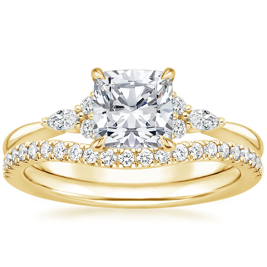 18K Yellow Gold Nadia Diamond Ring with Curved Ballad Diamond Ring (1/6 ct. tw.)