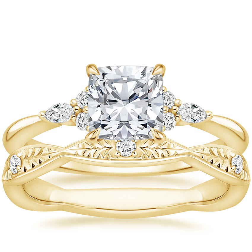 18K Yellow Gold Nadia Diamond Ring with Genevieve Diamond Ring