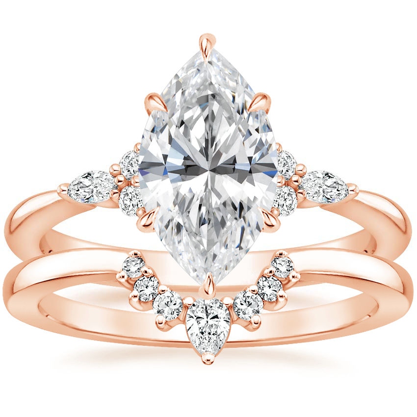 14K Rose Gold Nadia Lab Diamond Ring with Lunette Diamond Ring with 1.2 Carat Marquise Lab Grown Diamond