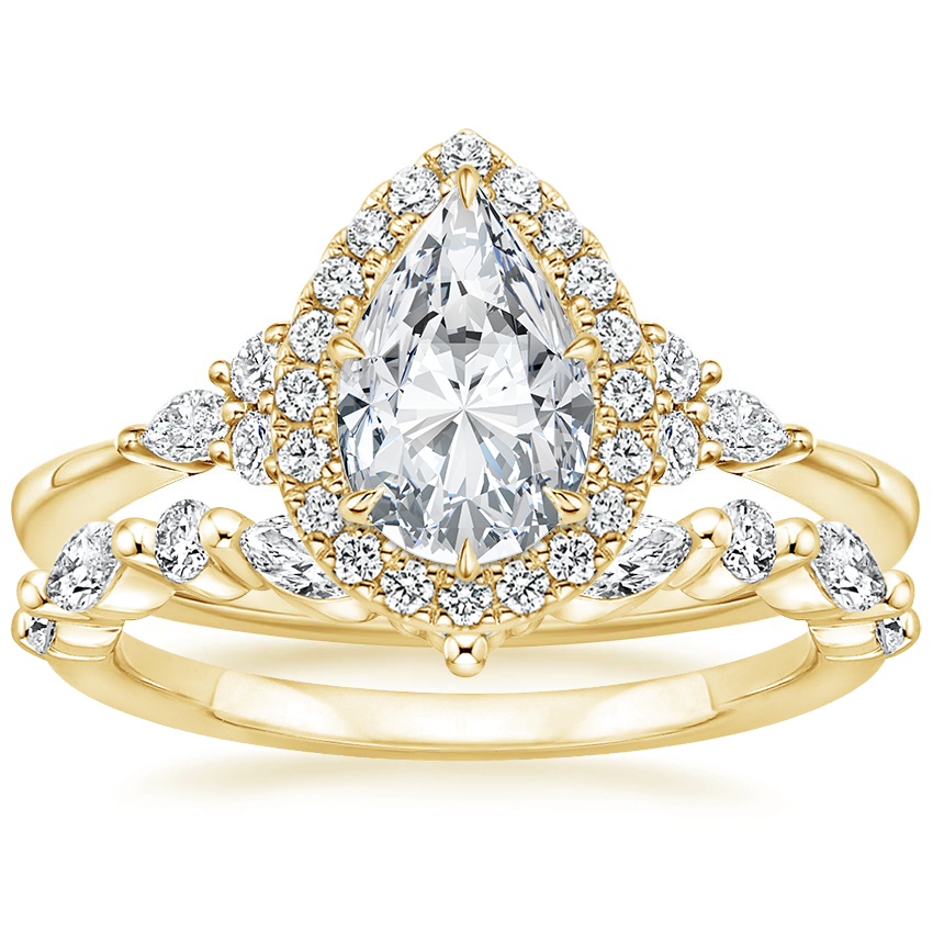 18K Yellow Gold Nadia Halo Diamond Ring (1/4 ct. tw.) with Curved Versailles Diamond Ring