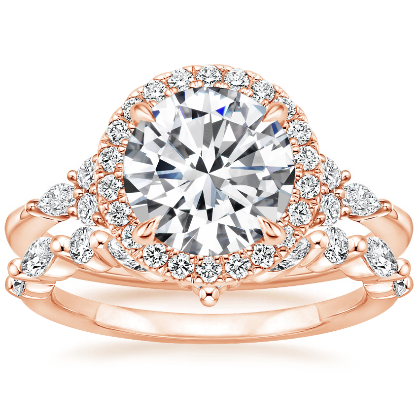 14K Rose Gold Nadia Halo Diamond Ring (1/4 ct. tw.) with Curved Versailles Diamond Ring